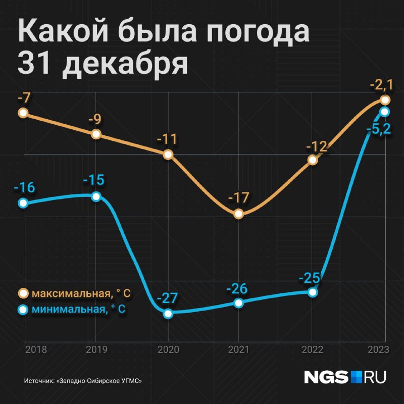 На календарь смотрели? До Нового года 34 дня!Мы в @ngs_news решили вспомнить: а какая погода была 31 декабря за последние шесть лет?Самым холодным стало 31 декабря 2021 года, когда днем температура опустилась до -17 градусов, а ночью было и вовсе -26.А вот самым теплым этот день был в прошлом году. Тогда температура опускалась максимум до […]