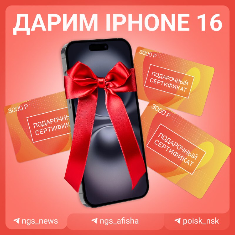 💥 Дарим новенький iPhone 16 и три сертификата в «Мира Термы»💥 Условия простые: • подписаться на каналы: @ngs_news @ngs_afisha @poisk_nsk• нажать на кнопку «Участвовать»;• не жадничать и отправить пост другу!2 апреля бот проверит подписку каждого участника и рандомным образом выберет трех победителей. Первому счастливчику достанется заветный iPhone 16, остальным — сертификаты в «Мира Термы» по […]