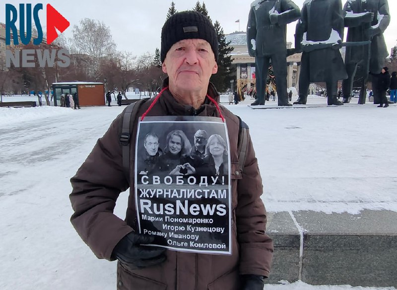 В Новосибирске активист Владимир Сухов провёл одиночный пикет на площади Ленина. Он держал плакат с требованием освободить журналистов RusNews: Марию Пономаренко, Игоря Кузнецова, Романа Иванова и Ольгу Комлеву, которые признаны в России «экстремистами и террористами».