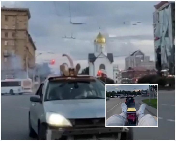 Сейчас автора безумной идеи и водителя, согласившегося везти человека на крыше автомобиля, разыскивает полиция.