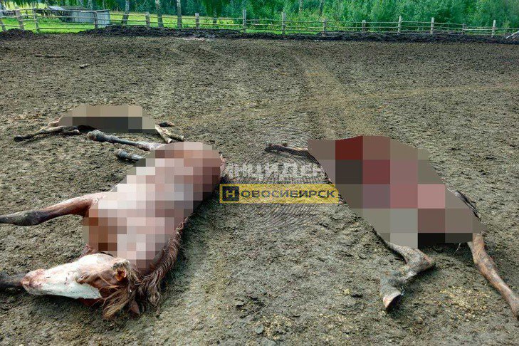 Под Новосибирском медведь разорвал лошадей и жеребенка в закрытом загоне